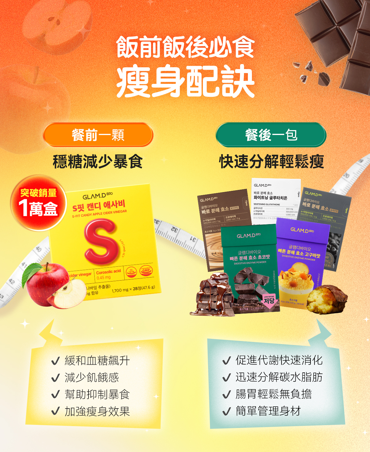 S-FIT蘋果醋糖+即食分解酵素粉 朱古力味