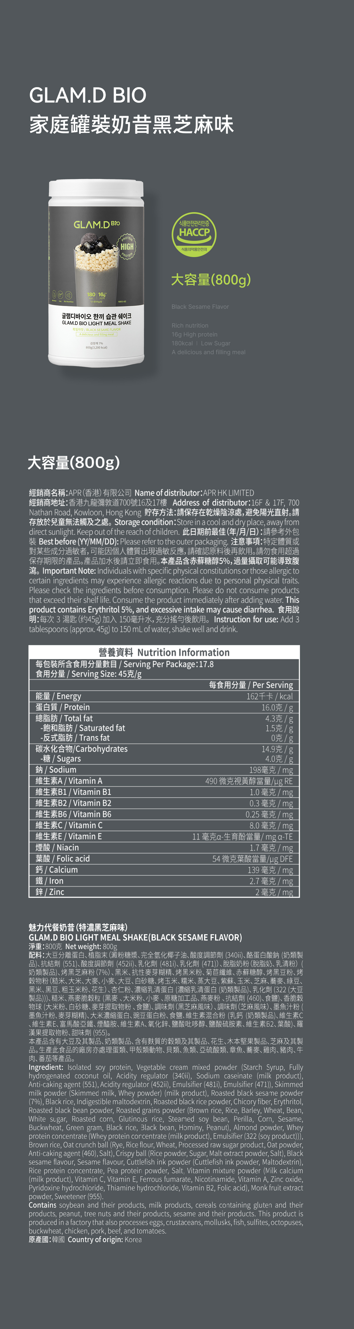 家庭罐裝奶昔(800g) 黑芝麻味強勢登場💥